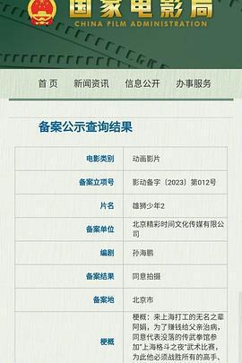 《雄狮少年2》剧情简介:来上海打工的无名之辈阿娟(李昕 配音),为了赚钱给父亲治病,同意代表没落的传武拳馆参加“上海格斗之夜”武术比赛,为此他必须战胜所有的高手、偏见和自己。